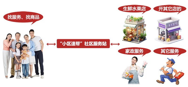 | "小区速帮"是扎根社区的一刻 钟便民生活服务平台,深度连接周边一公里内的居民、商家与服务者。我们围绕社区居民的日常购物、餐饮消费、家政维修、即时配送等高频需求,提供高性价比的一站式服务。 |