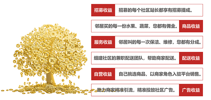 | 收益稳定: 每促成一笔订单即有提成,社区高频刚需的特性保证了收入的持续性和稳定性。 | ||